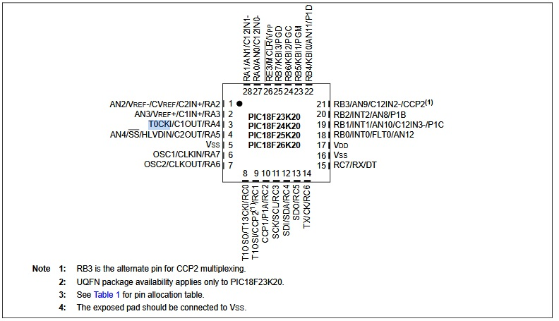 Dans la datasheet, on trouve l’assignation des GPIO suivante: